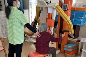「こはるびより」は定員30人。塗り絵など標準的な機能回復訓練のほか、本格的なトレーニングマシンによる筋力維持、最新のカラオケ設備による毎日1時間、1人1曲の歌唱披露などメニューが充実している。