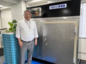 同社が主力製品とする「プロトン解凍機」は、凝縮潜熱を利用した湿度100%の低温高湿度システム。特許も取得済みだ。